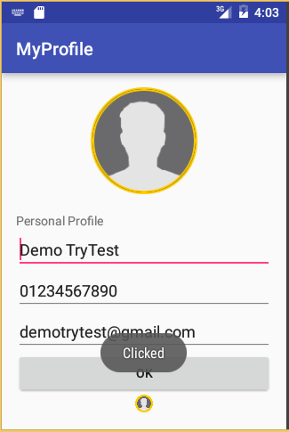 //Toast.makeText(getBaseContext(), "Clicked", Toast.LENGTH_SHORT).show();