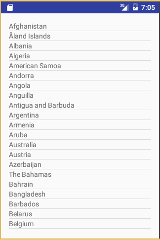 adapter = new ArrayAdapter(this,R.layout.items, R.id.tv, countries);