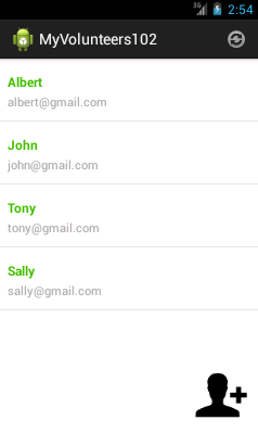 Later on we will add a new activity for the user to enter a new volunteer.