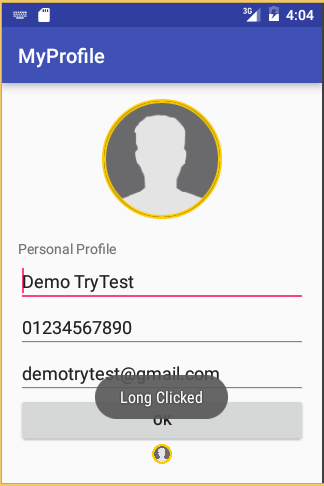 To allow the user to choose between Camera or Gallery for profile photo, the application provides two types of object click/tap ie Short Tap and Long Tap.